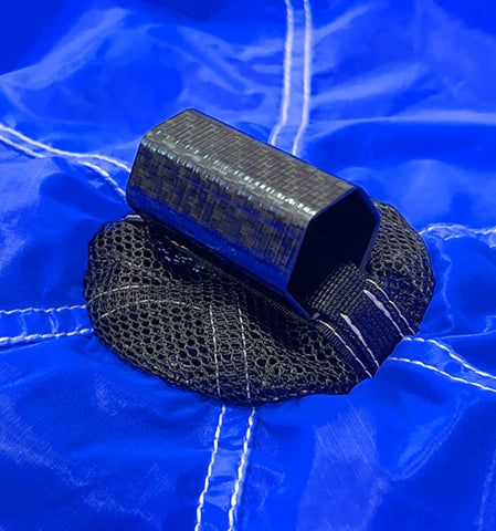 Our kill-line pilot chute system for skydiving comes standard with an 8' bridle (from pin to PC attach-point, 11' in total), attachment maillons, and a carbon fiber handle. It's designed to work with D-bags with a bottom grommet size of #4 or #5 only.